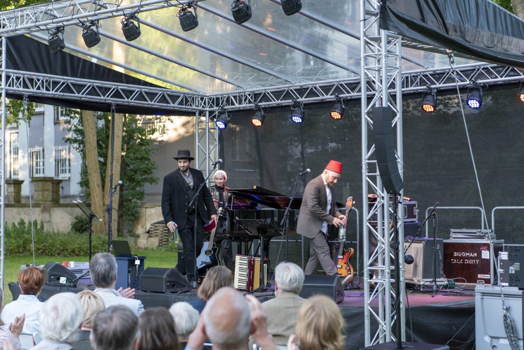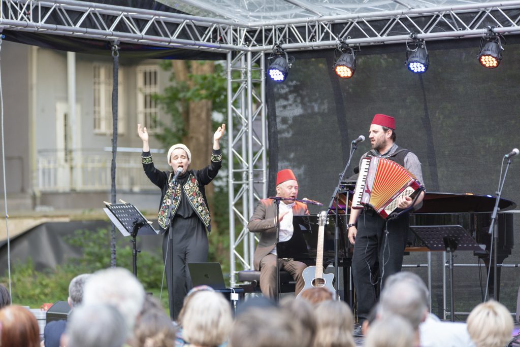 Das gilt auch für den Musiker Yuriy Gurzhy, bekannt als Gründer der »Russendisko«. In einem Züricher Antiquariat war ihm eine englische Ausgabe der Biografie »Der Orientalist« in die Hände gefallen. Fortan hat die schillernde Figur Essad Beys die Phantasie des Musikers beflügelt. In kurzer Zeit waren ein paar Songs komponiert und das Maxim Gorki-Teater in Berlin als Aufführungsort für eine musikalische Nummernrevue ins Boot geholt. Als dann noch der Musiker Daniel Kahn als Kompagnon gewonnen werden konnte, war die perfekte Paarung gefunden. Die Schauspielerin und Sängerin Marina Frenk komplettiert das Trio.
